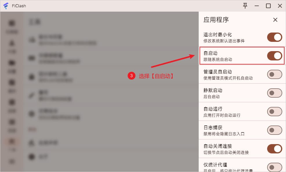 随后在右侧滑出的窗口中选择自启动即可设置开机自启动,如下图所示。